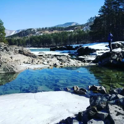 Плейспот на Нижней Катуни в протоке у левого берега реки.