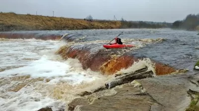 По высокому уровню воды можно не только прыгнуть водопад, но и посерфить на волнах.